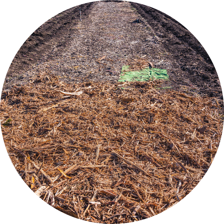 枝葉&樹木=バーク堆肥原料・炭素循環農法の資材・水分調整材(生ごみ、糞尿等)、竹&抜根=遊歩道の舗装材・マルチング材・雑草抑止材など、それぞれの特性を活かした品目別に破砕。主に農家組合や、一般農家・建設業者等に売却しております。